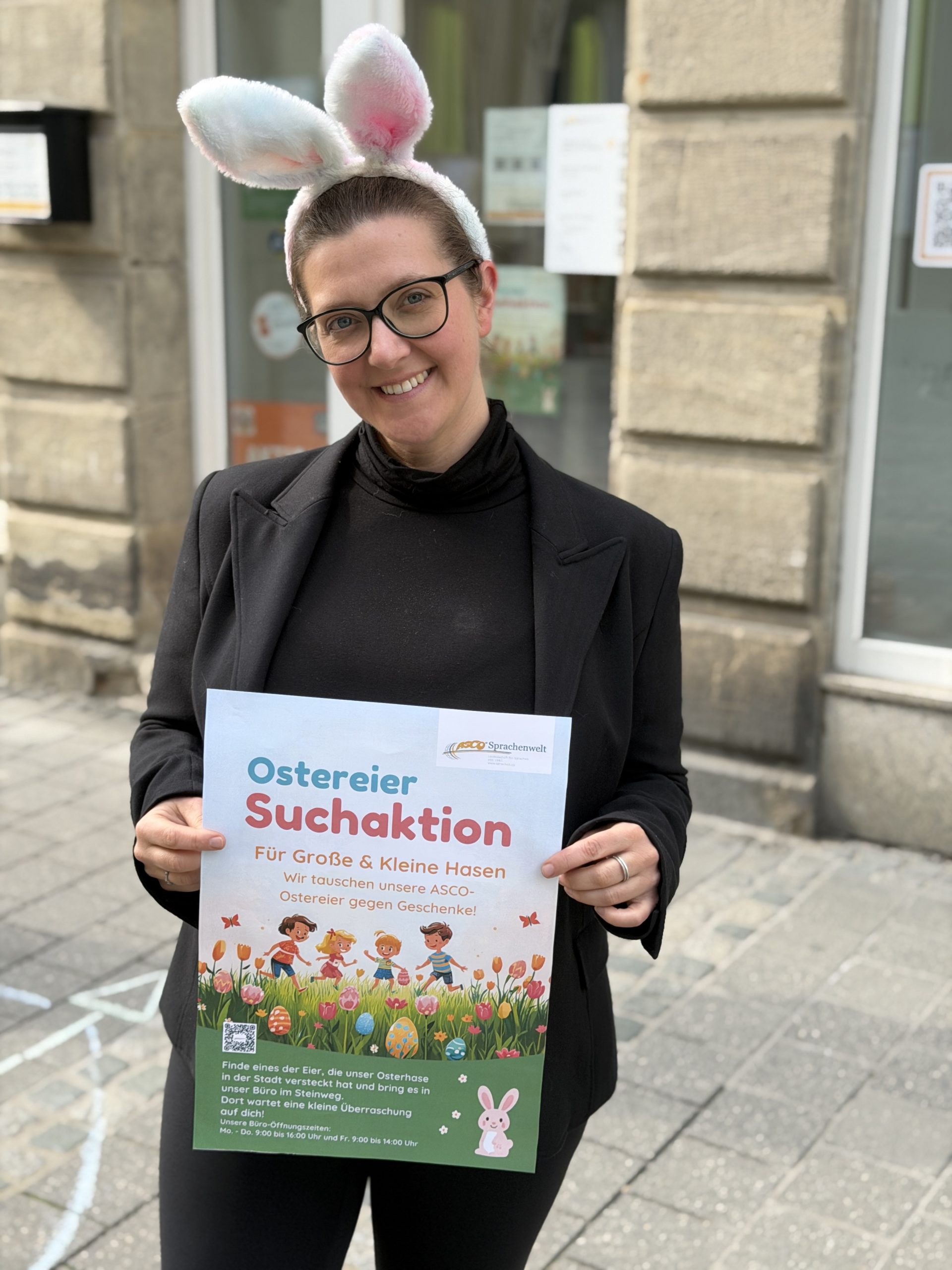 Ostern ist die perfekte Zeit, um rauszugehen, die Stadt neu zu entdecken – und vielleicht sogar eine kleine Überraschung zu finden. Genau das macht die ASCO Sprachenwelt in diesem Jahr möglich. In der gesamten Coburger Innenstadt wurden bunte, laminierte Ostereier versteckt, die darauf warten, gefunden zu werden. Wer eines entdeckt, kann es während der Bürozeiten im Steinweg 31 gegen eine kleine Überraschung eintauschen.